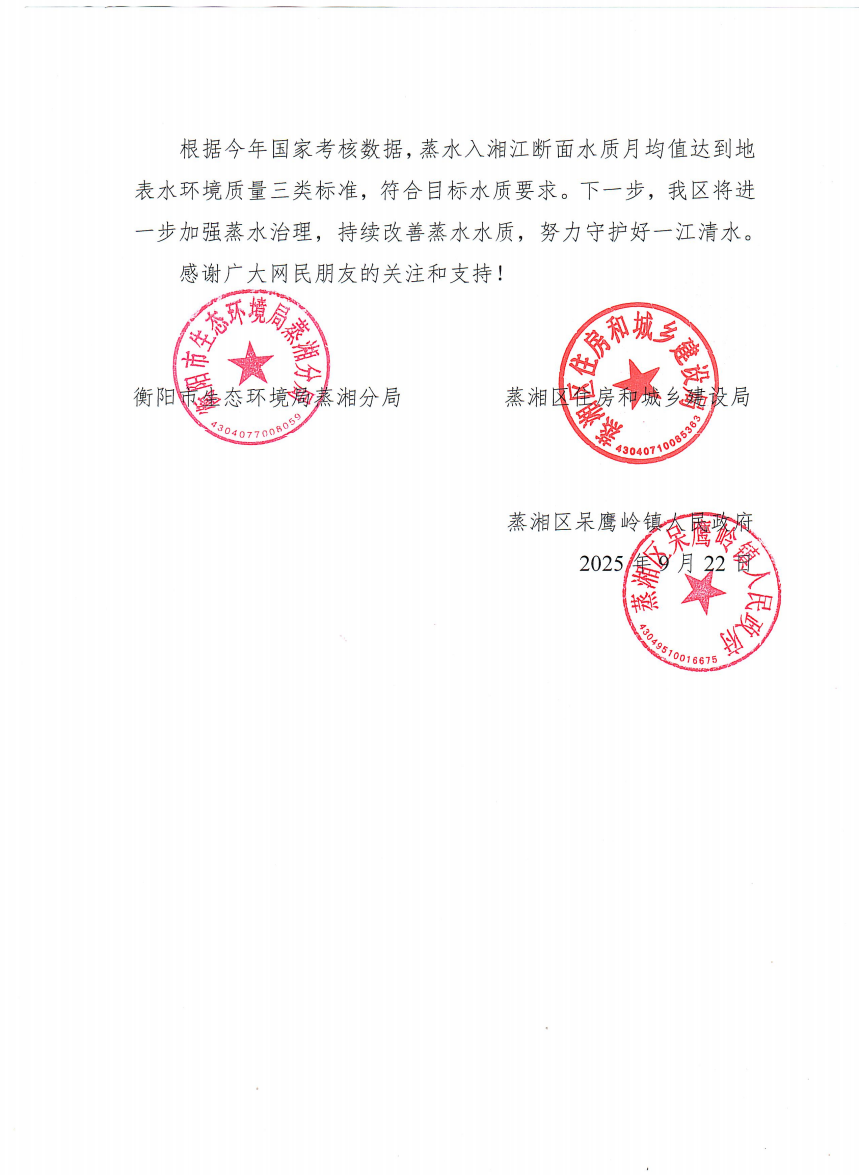 蒸湘区呆鹰岭镇蒸水河段污水排放问题情况通报